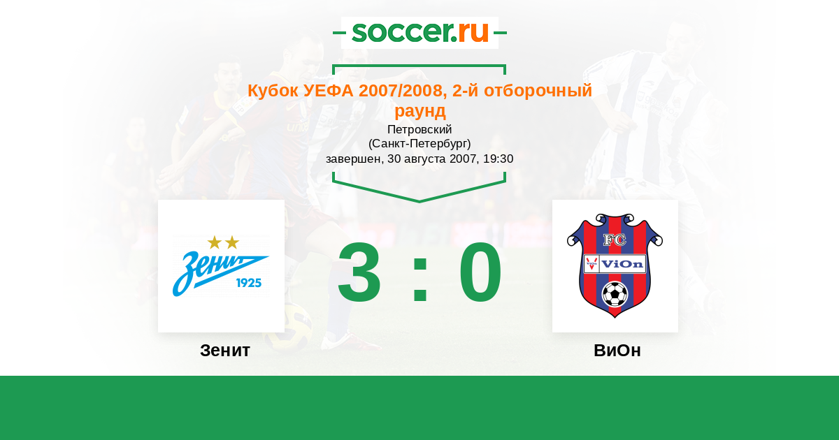 Зенит - ВиОн: обзор матча 30 августа 2007