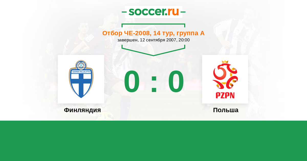 Финляндия - Польша: обзор матча 12 сентября 2007