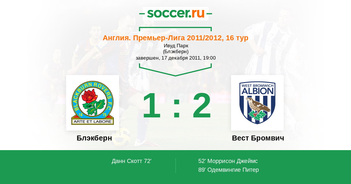 Блэкберн - Вест Бромвич: обзор матча 17 декабря 2011