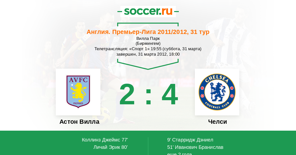 Астон Вилла - Челси: обзор матча 31 марта 2012