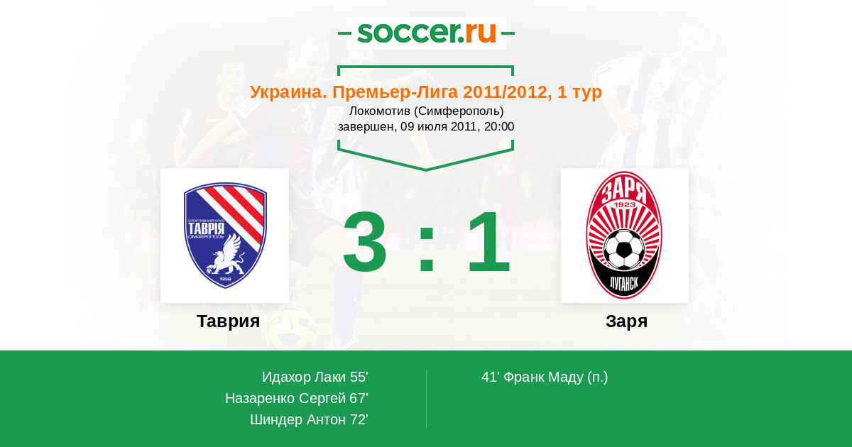 | 6. | Таврия | 30 | 12 | 9 | 9 | 9 | 43:36 | 45 |