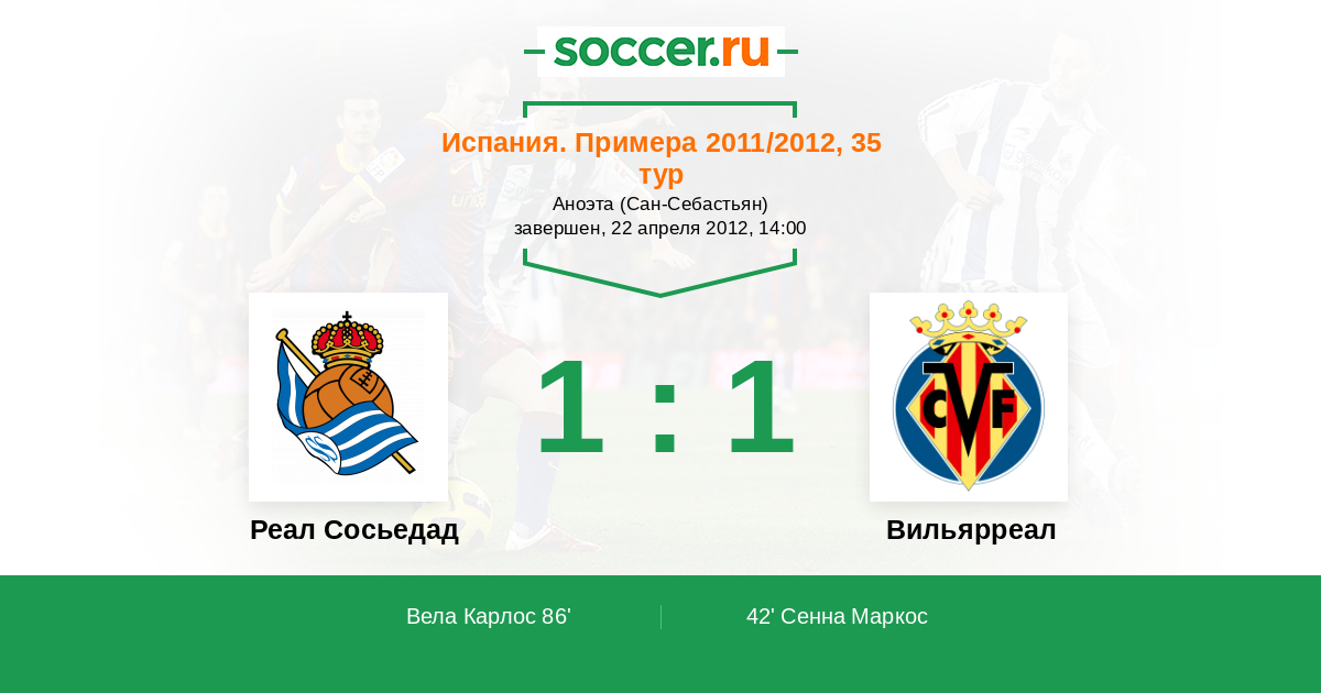 Реал Сосьедад - Вильярреал: обзор матча 22 апреля 2012