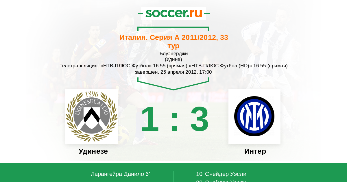 Удинезе - Интер: обзор матча 25 апреля 2012