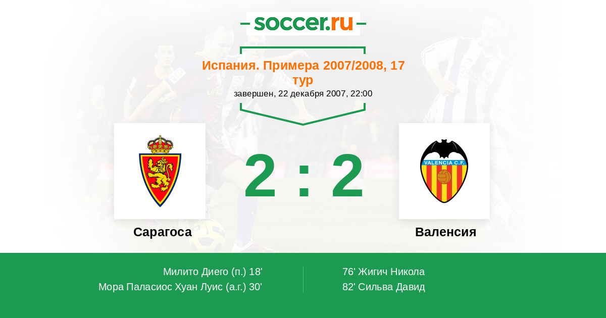 Сарагоса - Валенсия: обзор матча 22 декабря 2007