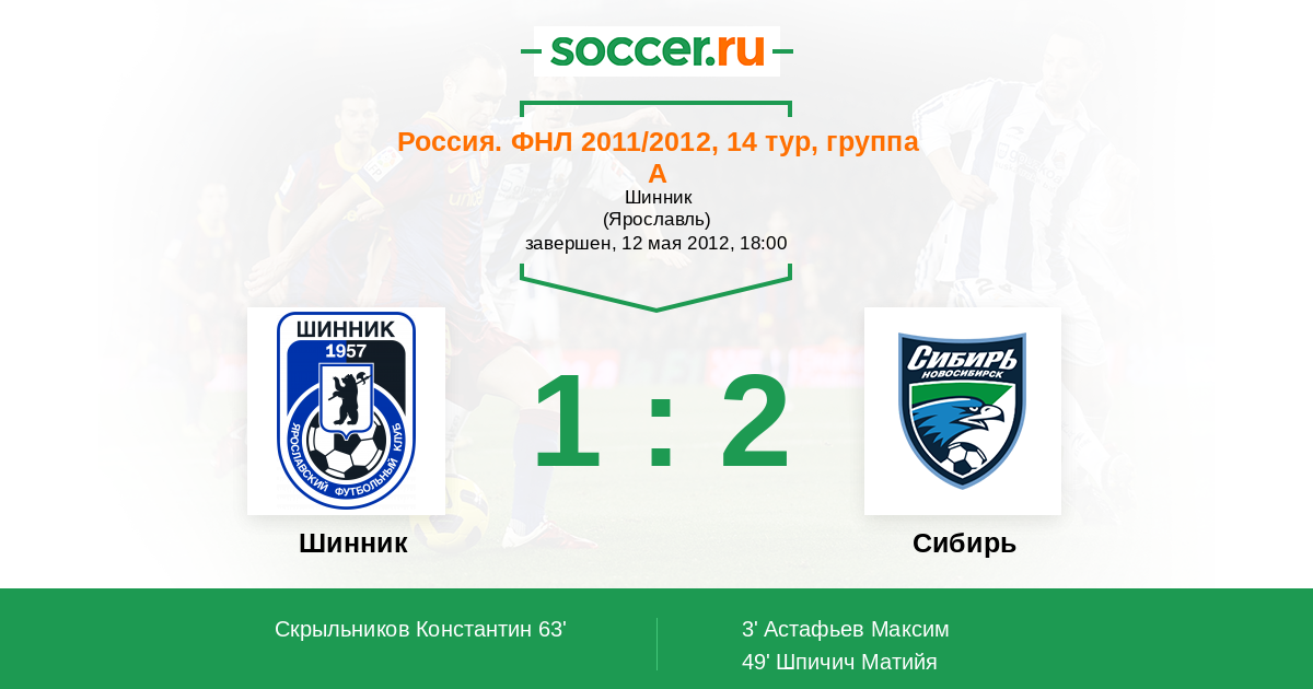 Шинник - Сибирь: обзор матча 12 мая 2012