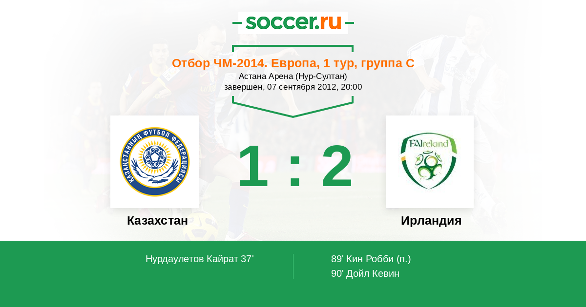 Казахстан - Ирландия: обзор матча 7 сентября 2012