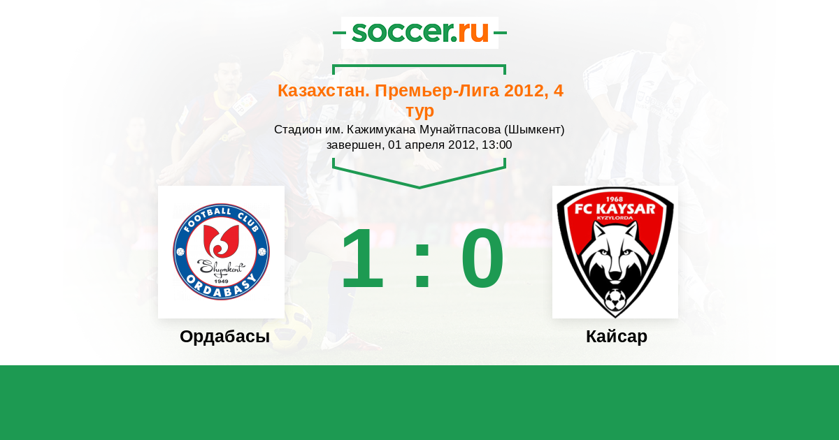 Ордабасы - Кайсар: обзор матча 1 апреля 2012
