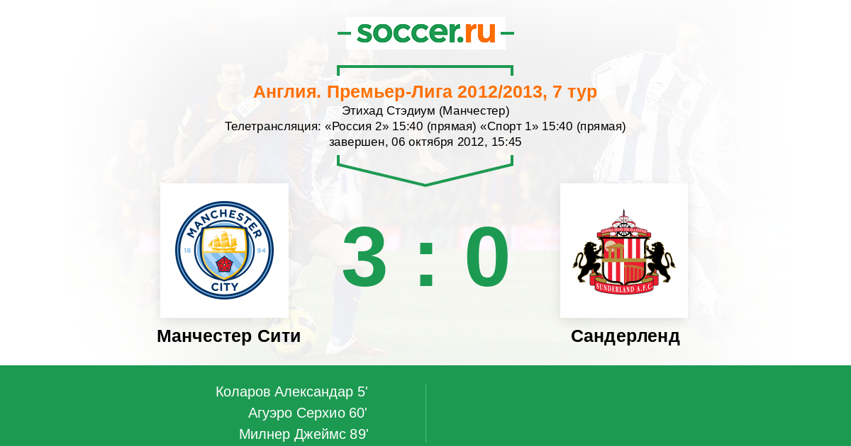Манчестер Сити - Сандерленд: обзор матча 6 октября 2012