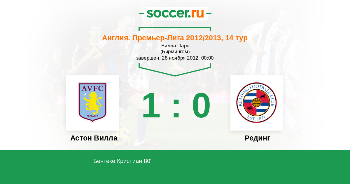 Астон Вилла - Рединг: обзор матча 28 ноября 2012