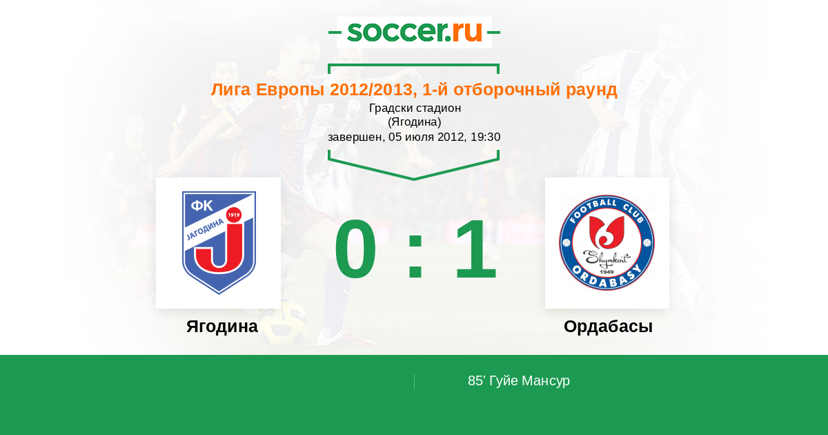 Ягодина - Ордабасы: обзор матча 5 июля 2012