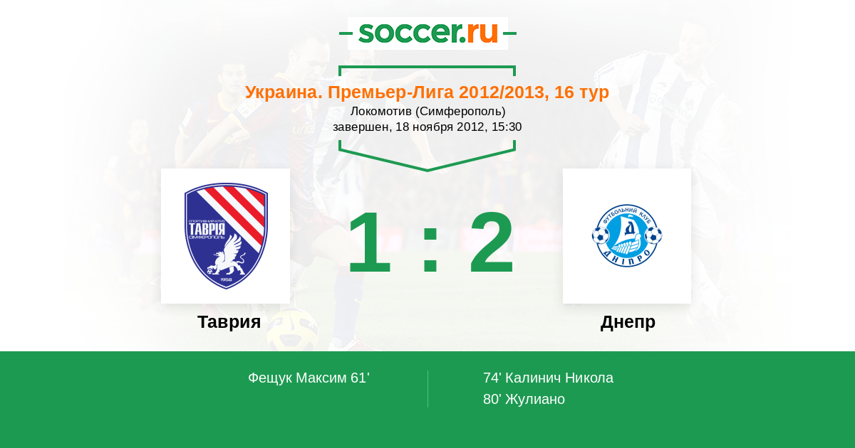| 4. | Днепр Дп | 15 | 11 | 2 | 2 | 7 | 35:10 | 35 |