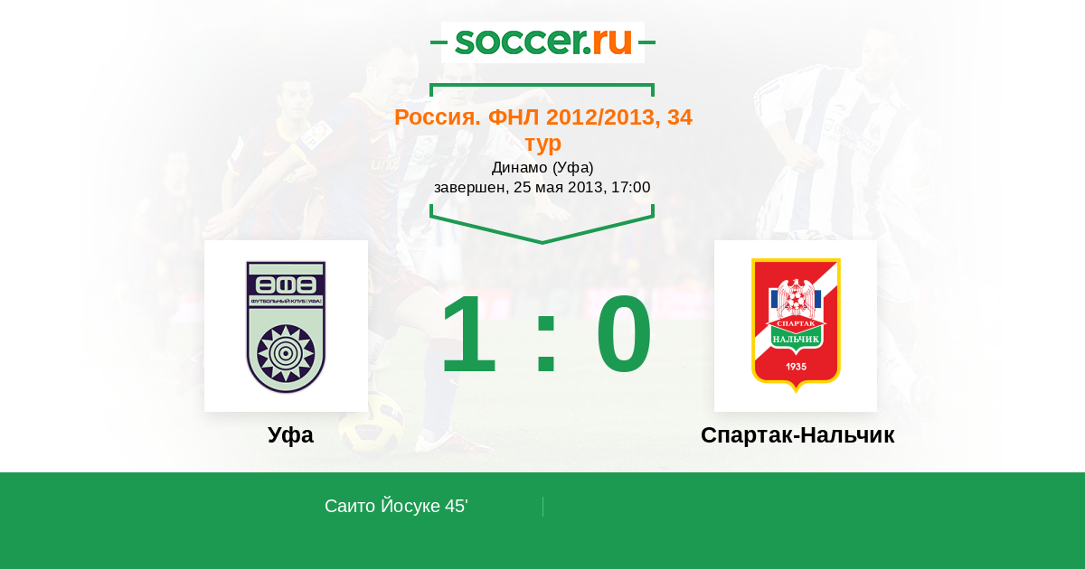 Уфа - Спартак-Нальчик: обзор матча 25 мая 2013