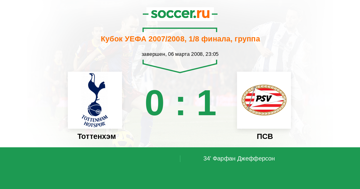 Тоттенхэм - ПСВ: обзор матча 6 марта 2008
