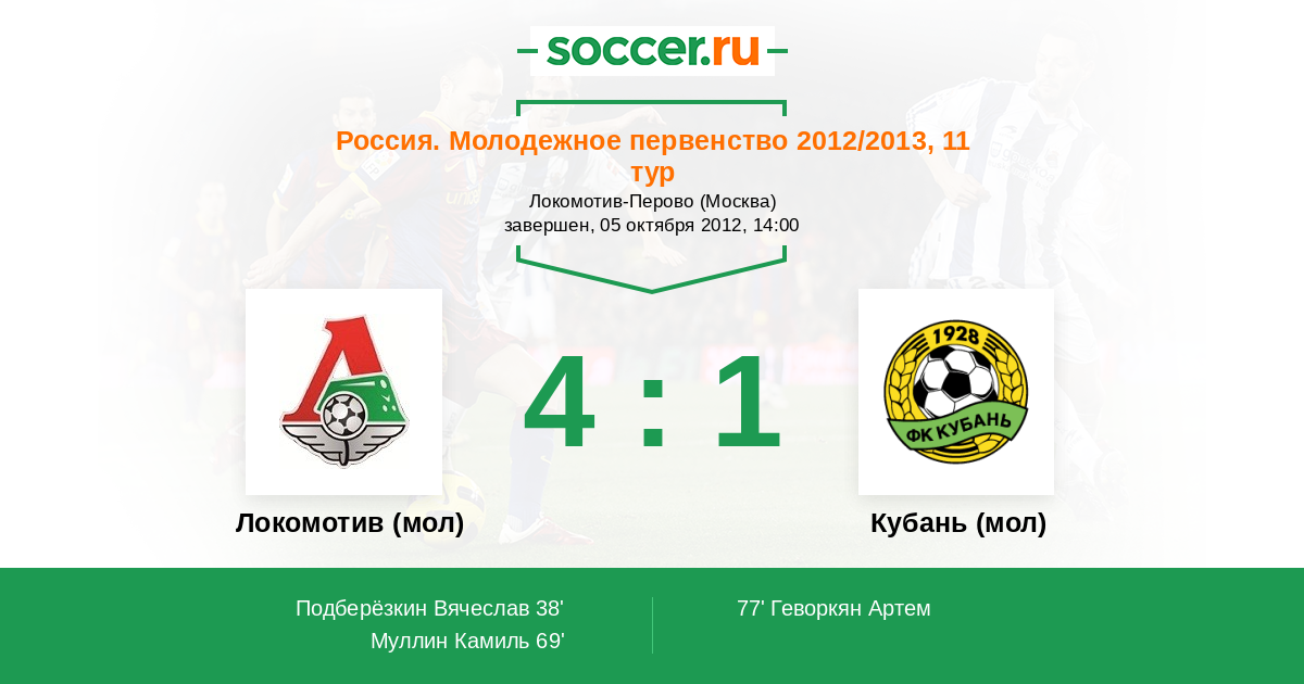 Локомотив (мол) - Кубань (мол): обзор матча 5 октября 2012
