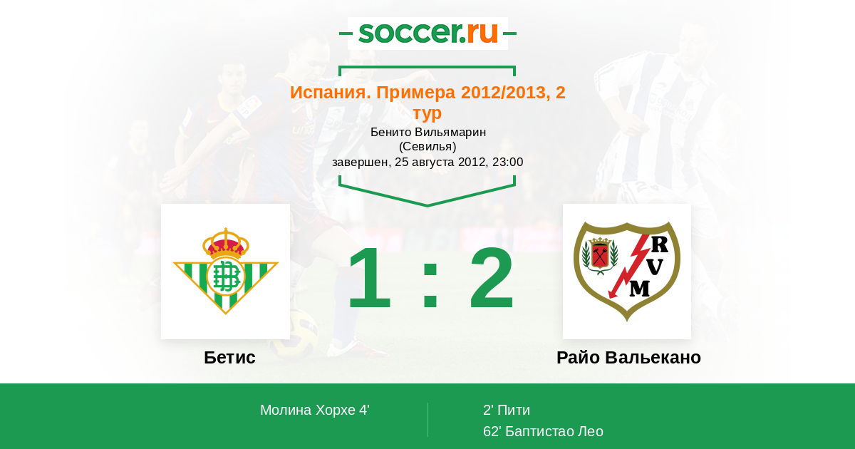 Бетис - Райо Вальекано: обзор матча 25 августа 2012