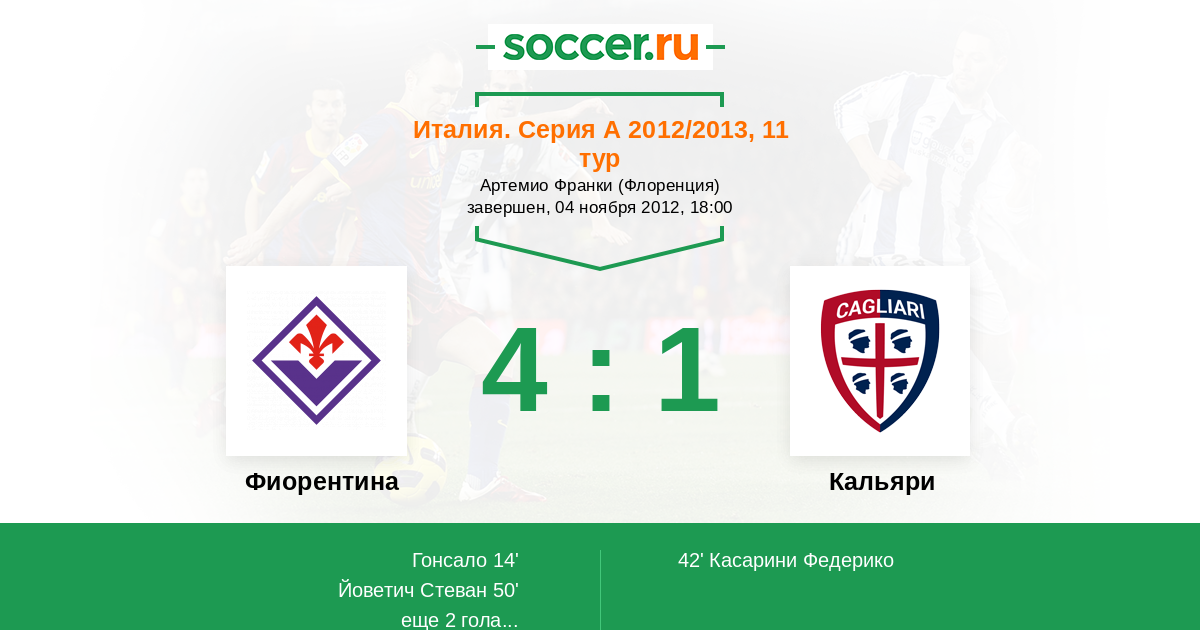 Фиорентина - Кальяри: обзор матча 4 ноября 2012