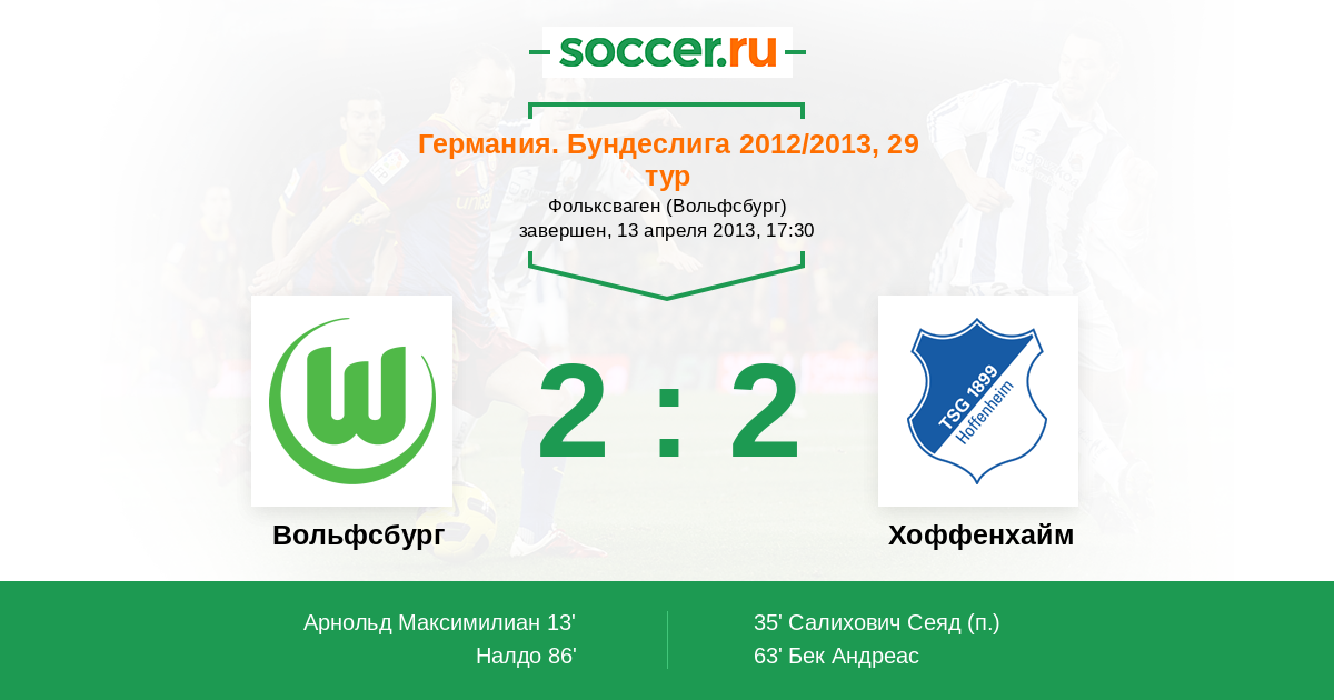 Вольфсбург - Хоффенхайм: обзор матча 13 апреля 2013