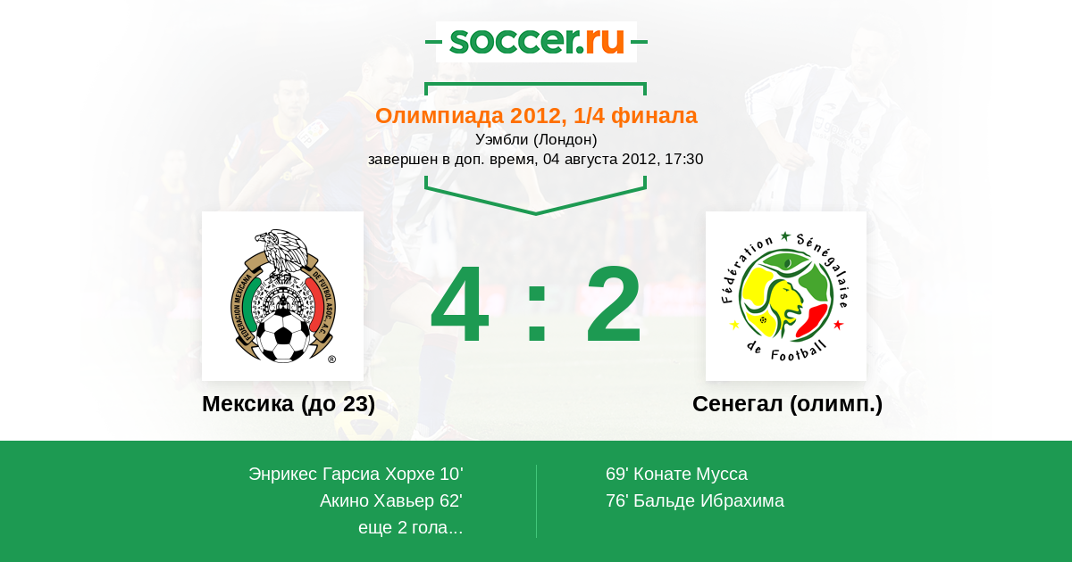 Сенегал олимп. | 3 | 1 | 2 | 0 | 1 | 4:2 | 5 |