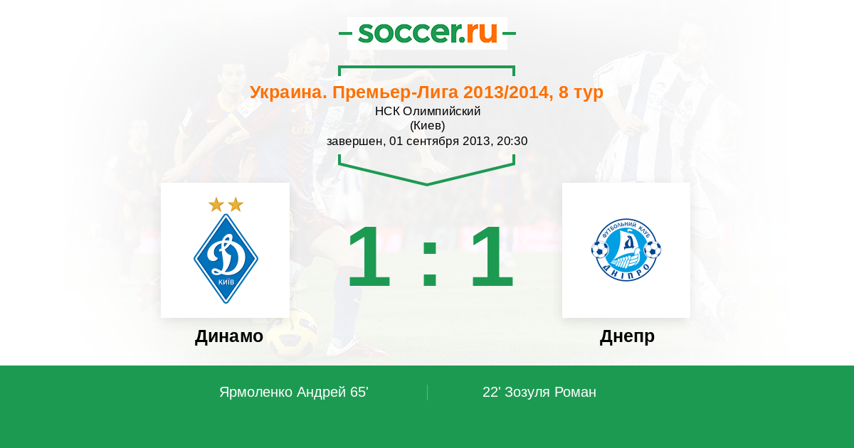 Динамо - Днепр: обзор матча 1 сентября 2013