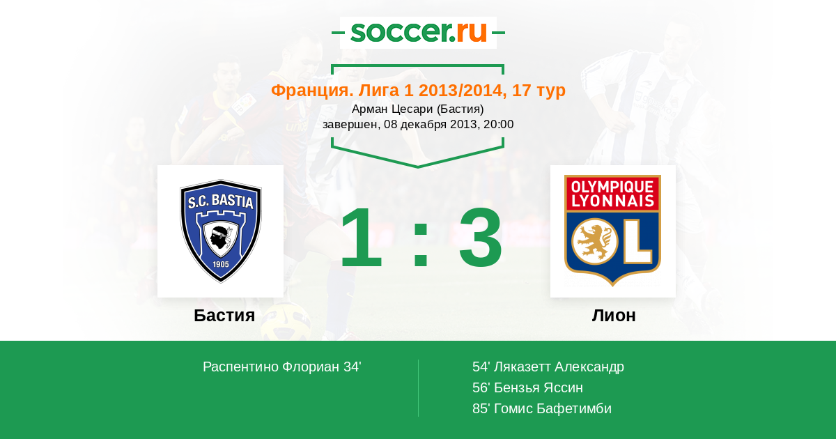 Бастия - Лион: обзор матча 8 декабря 2013