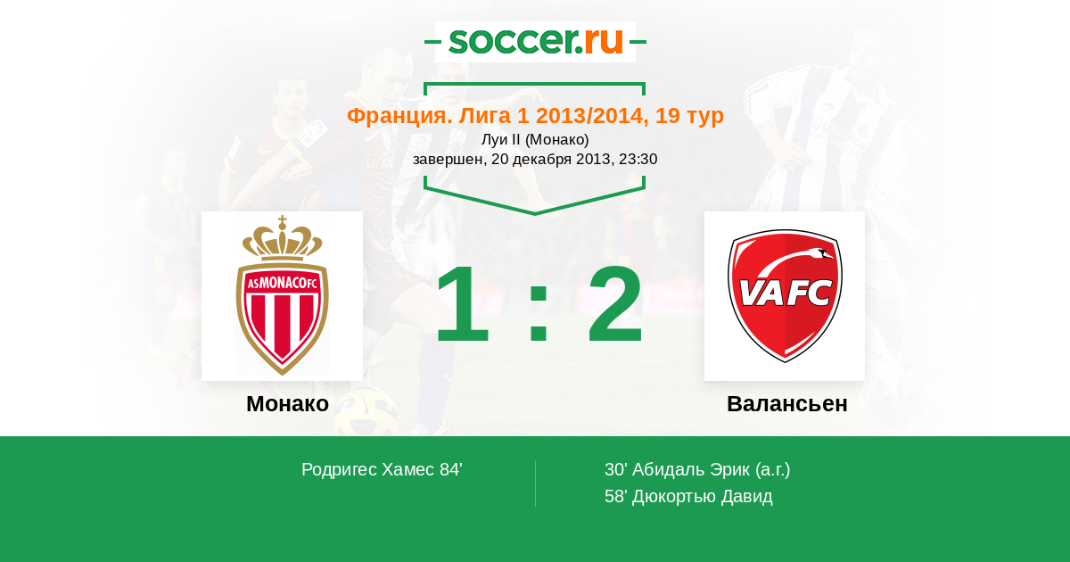 Монако - Валансьен: обзор матча 20 декабря 2013