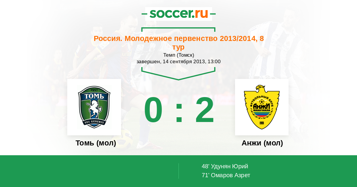 Томь (мол) - Анжи (мол): обзор матча 14 сентября 2013