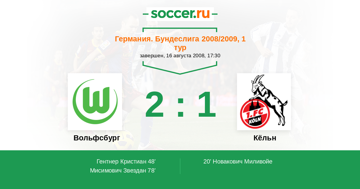 Вольфсбург - Кёльн: обзор матча 16 августа 2008