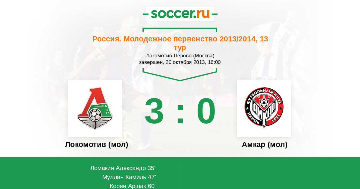 Локомотив (мол) - Амкар (мол): обзор матча 20 октября 2013
