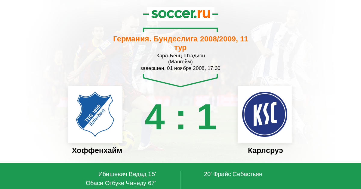 Хоффенхайм - Карлсруэ: обзор матча 1 ноября 2008