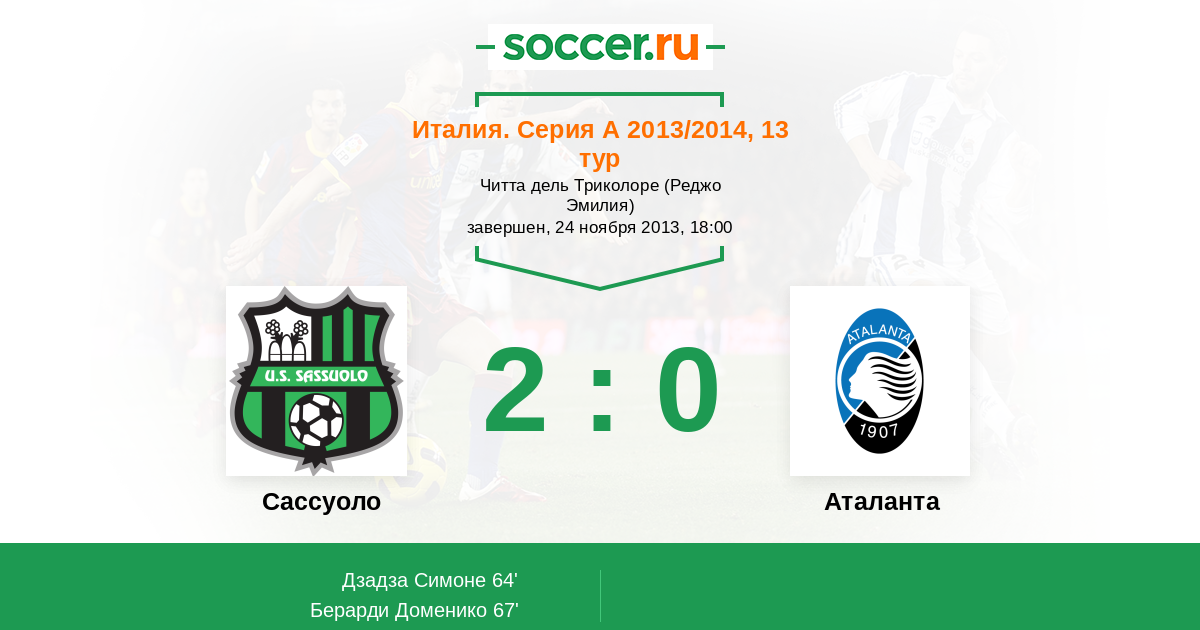 Сассуоло - Аталанта: обзор матча 24 ноября 2013
