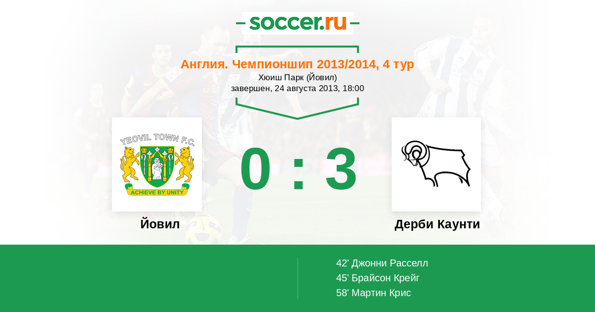 Йовил - Дерби Каунти: обзор матча 24 августа 2013
