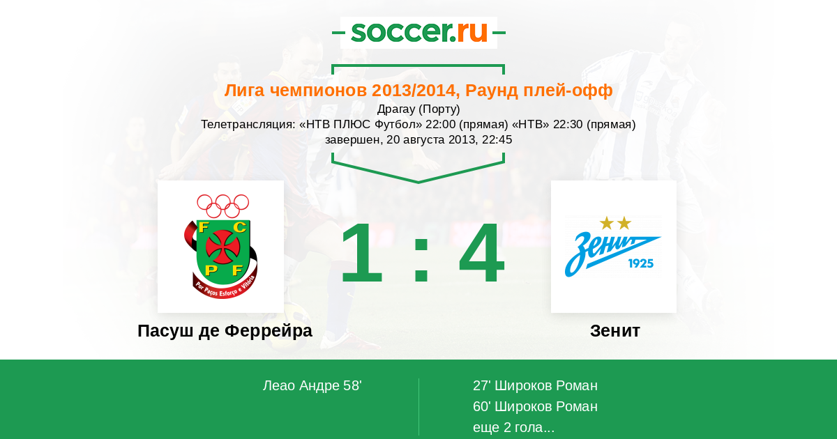 Пасуш де Феррейра - Зенит: обзор матча 20 августа 2013
