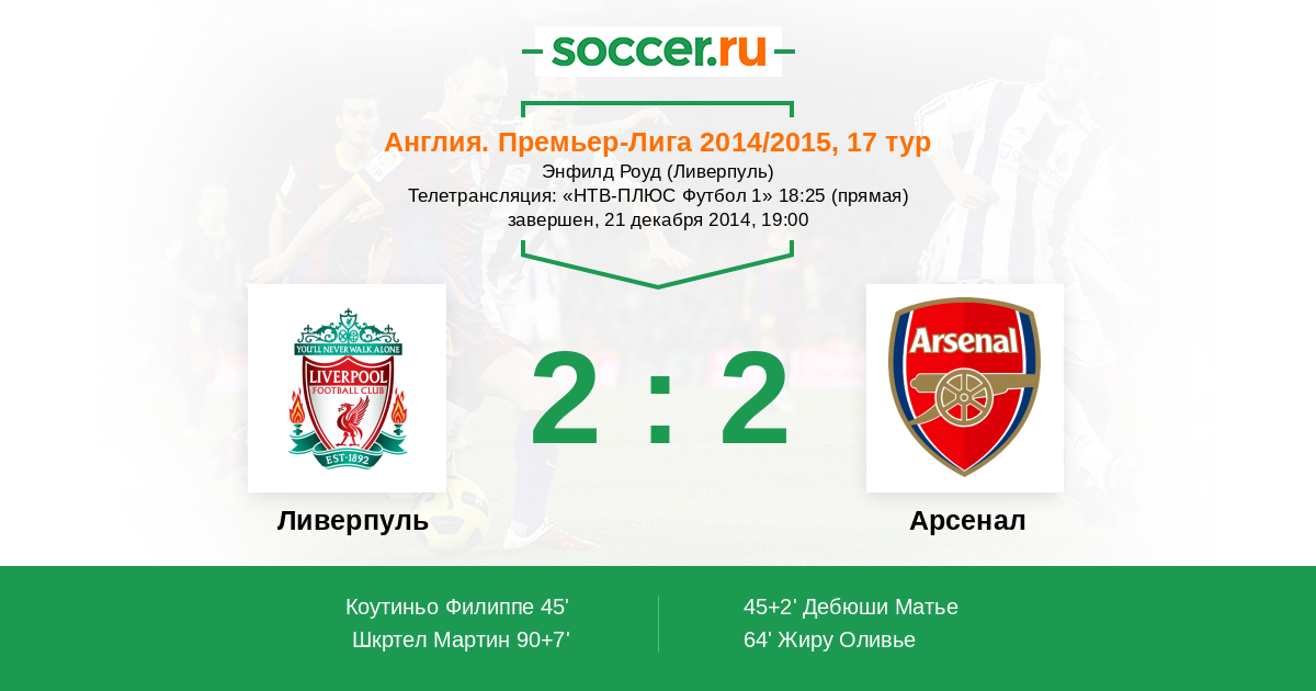Ливерпуль - Арсенал: обзор матча 21 декабря 2014