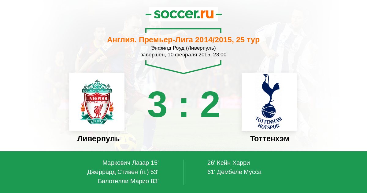 Ливерпуль - Тоттенхэм: обзор матча 10 февраля 2015