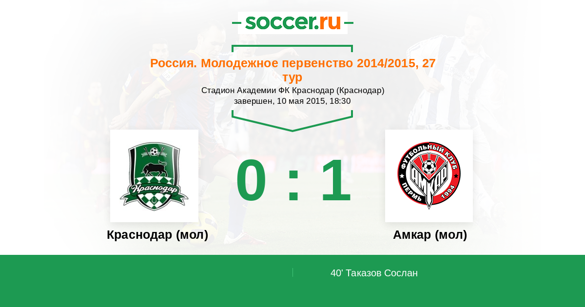 Краснодар (мол) - Амкар (мол): обзор матча 10 мая 2015