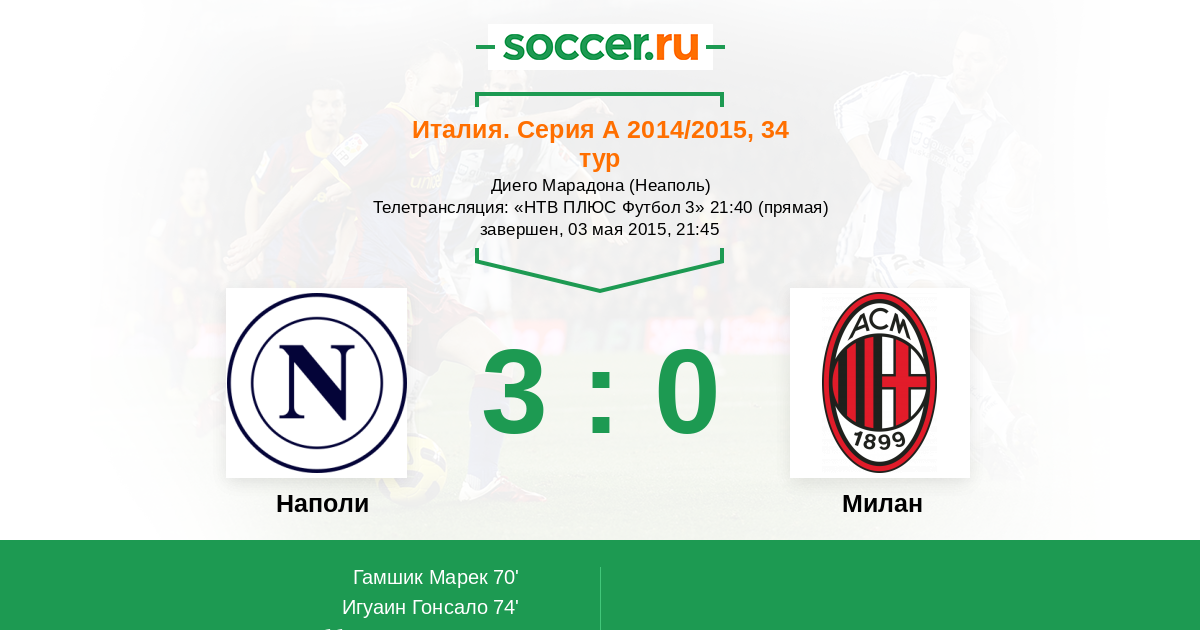 Наполи - Милан: обзор матча 3 мая 2015