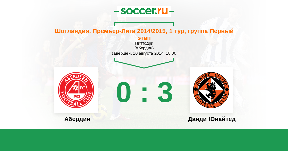 Абердин - Данди Юнайтед: обзор матча 10 августа 2014