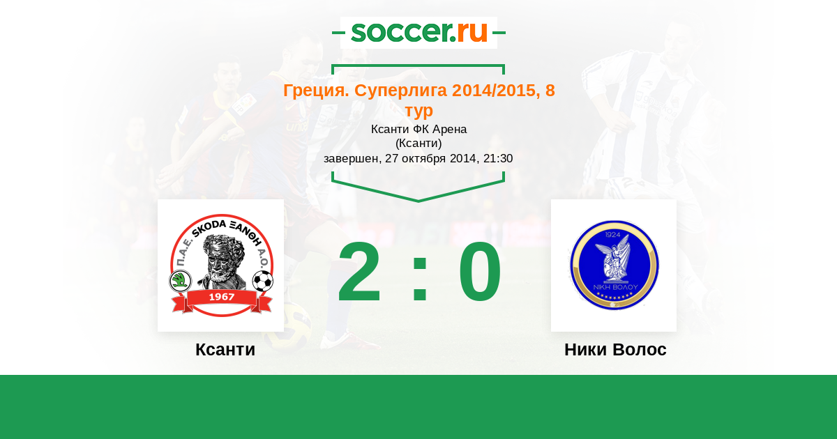 Ксанти - Ники Волос: обзор матча 27 октября 2014