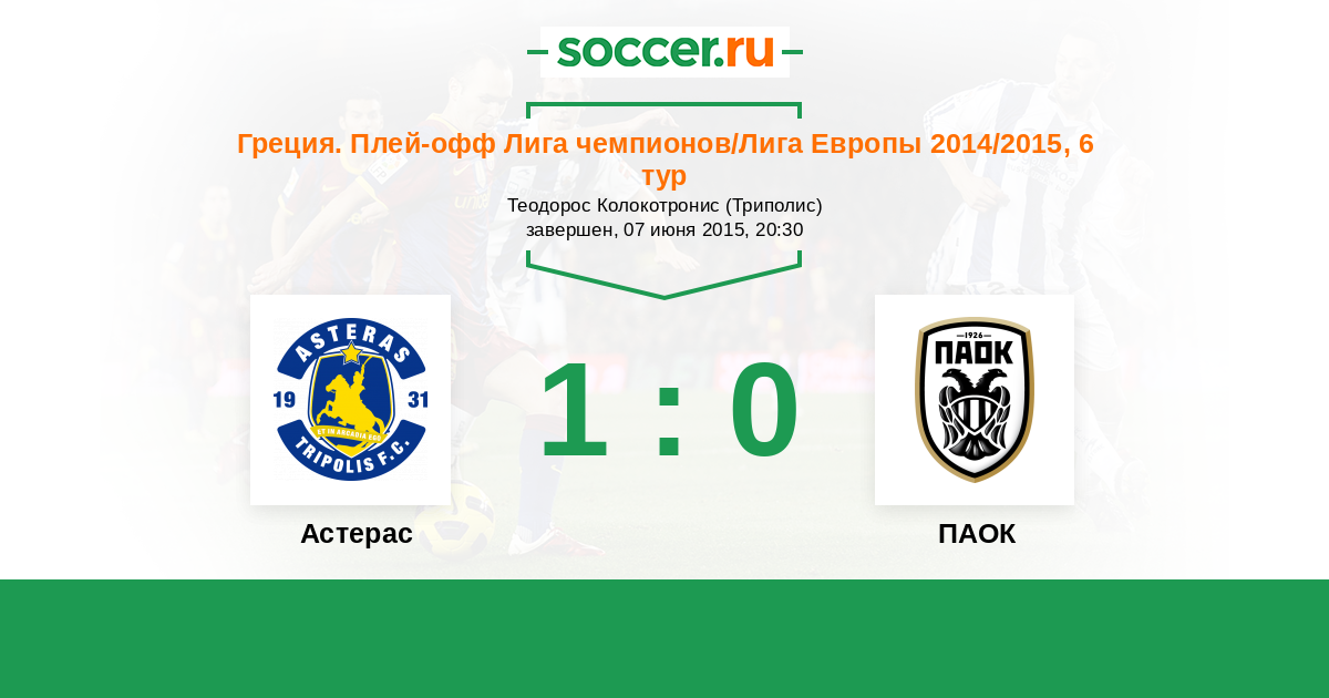 Астерас - ПАОК: обзор матча 7 июня 2015