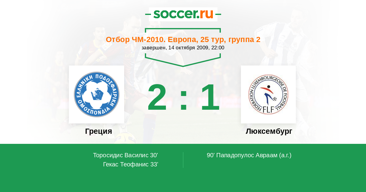 Греция - Люксембург: обзор матча 14 октября 2009