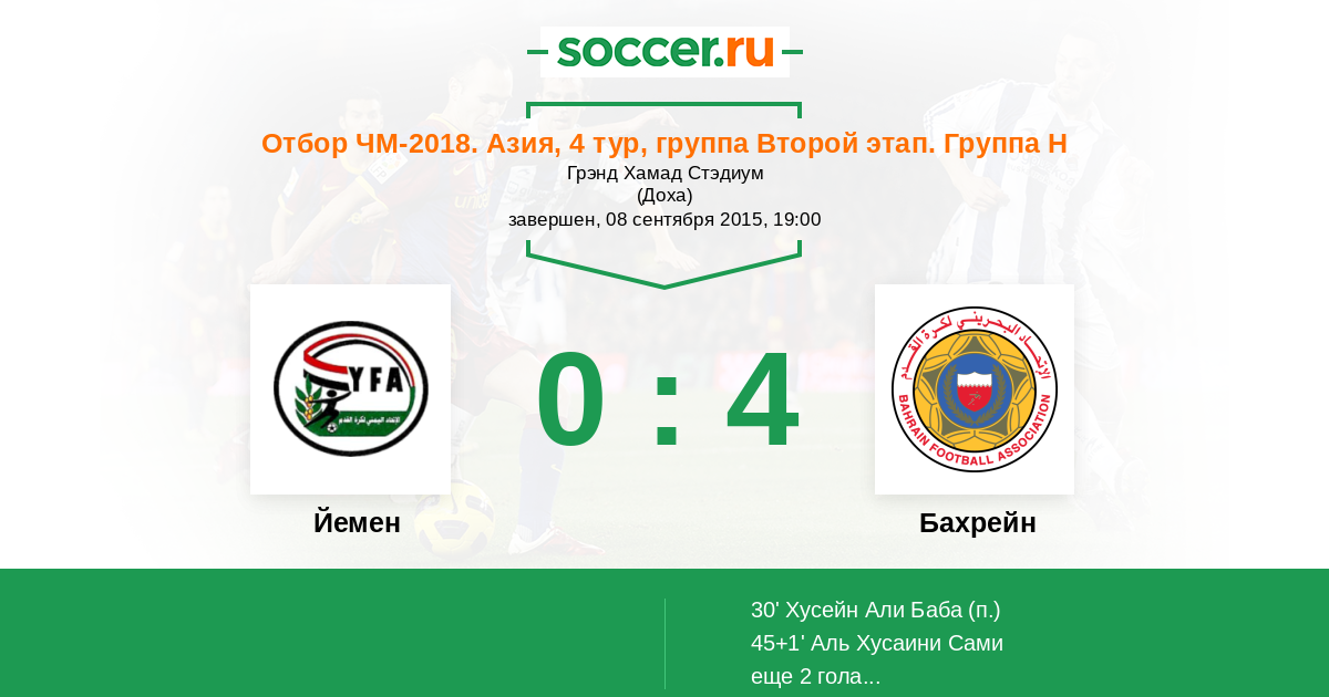 Йемен - Бахрейн: обзор матча 8 сентября 2015