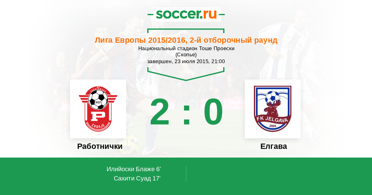 Работнички - Елгава: обзор матча 23 июля 2015