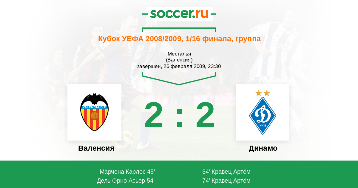 Валенсия - Динамо: обзор матча 26 февраля 2009