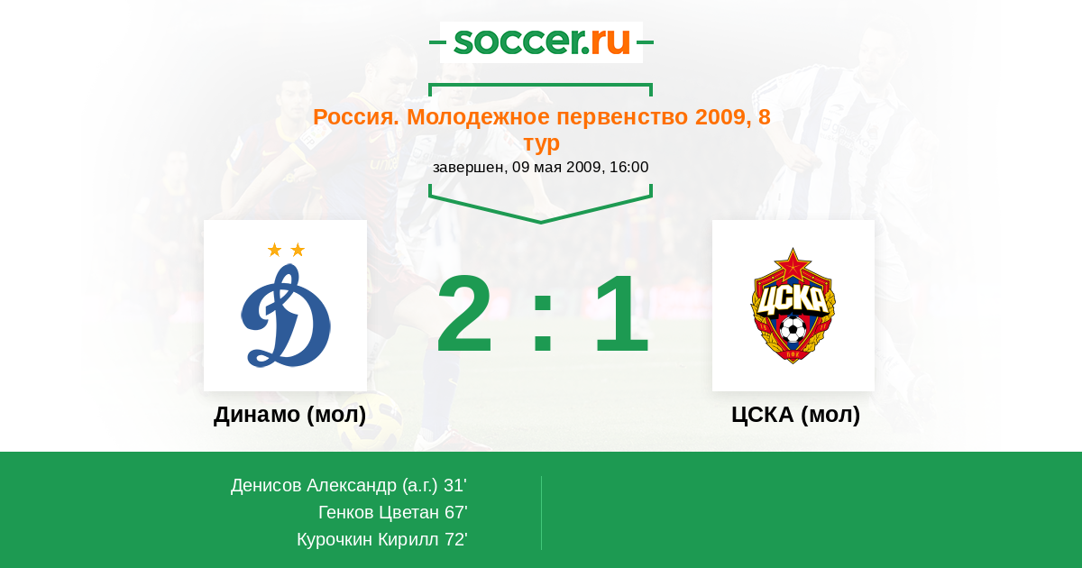 Динамо (мол) - ЦСКА (мол): обзор матча 9 мая 2009