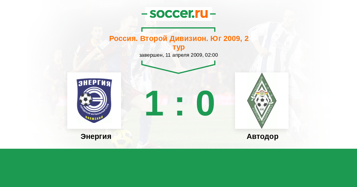 Энергия - Автодор: обзор матча 11 апреля 2009