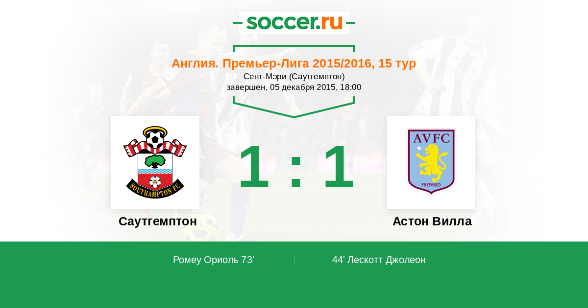 Саутгемптон - Астон Вилла: обзор матча 5 декабря 2015