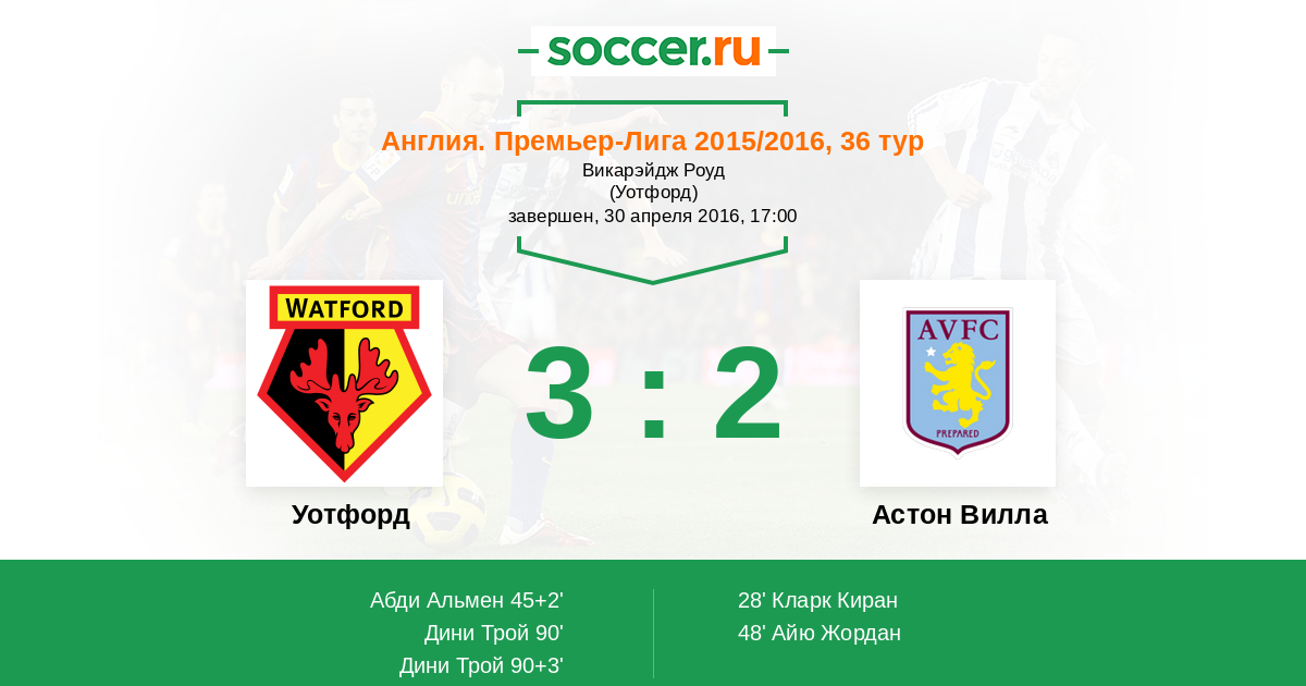 Уотфорд - Астон Вилла: обзор матча 30 апреля 2016