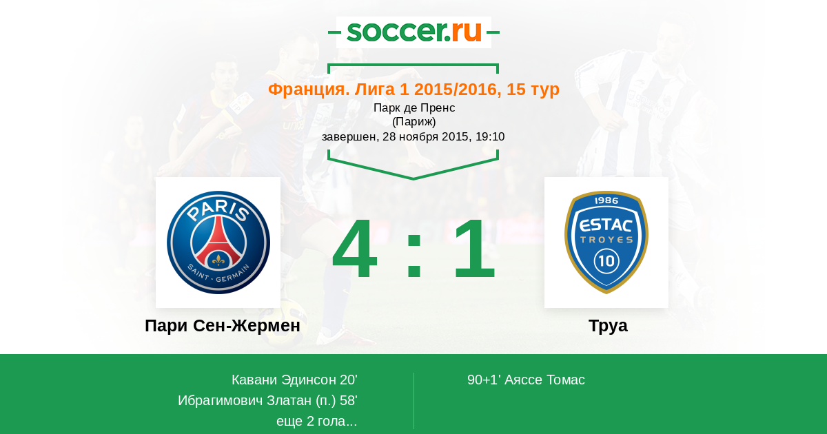 Пари Сен-Жермен - Труа: обзор матча 28 ноября 2015