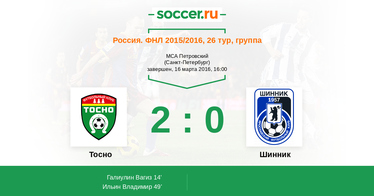 | 8. | Тосно | 19 | 10 | 2 | 7 | 6 | 32:24 | 32 |