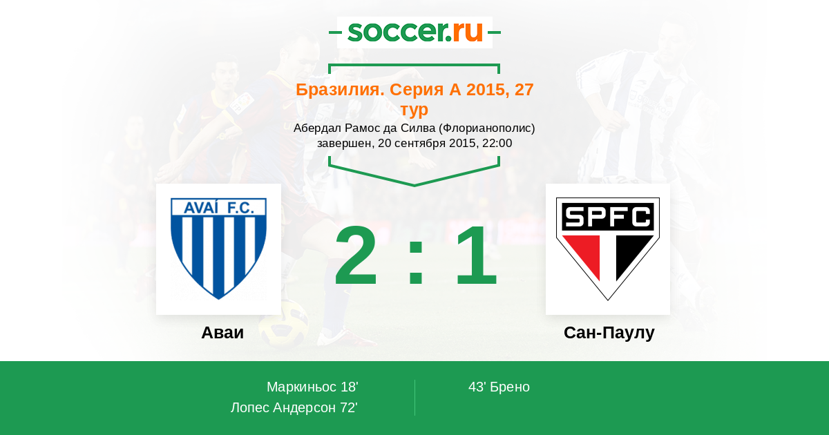 Аваи - Сан-Паулу: обзор матча 20 сентября 2015
